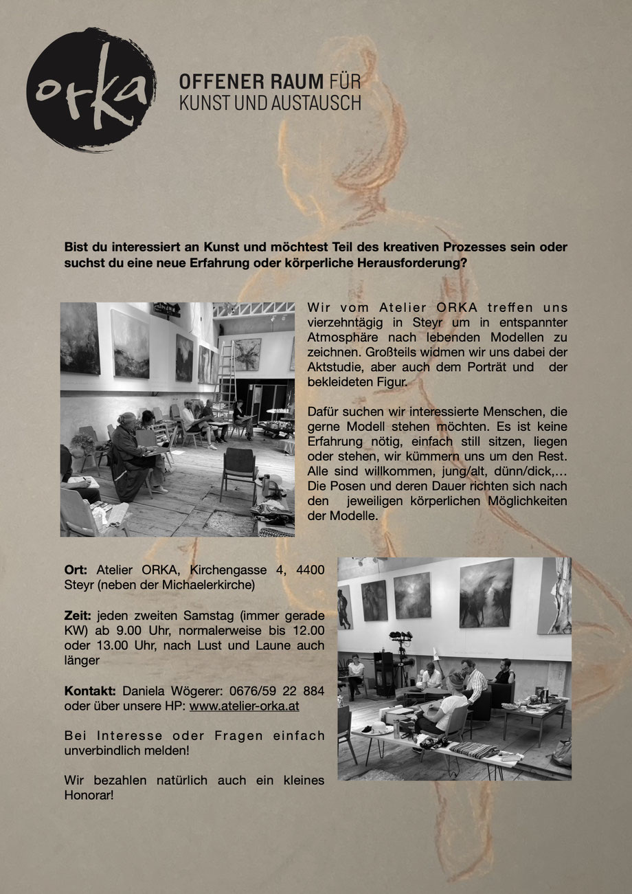 Das Atelier ORKA befindet sich in der Kirchengasse 4, 4400 Steyr.. Weitere Infos zum Verein und den Veranstaltungen findet Ihr auf der Vereinshomepage unter folgendem Link: